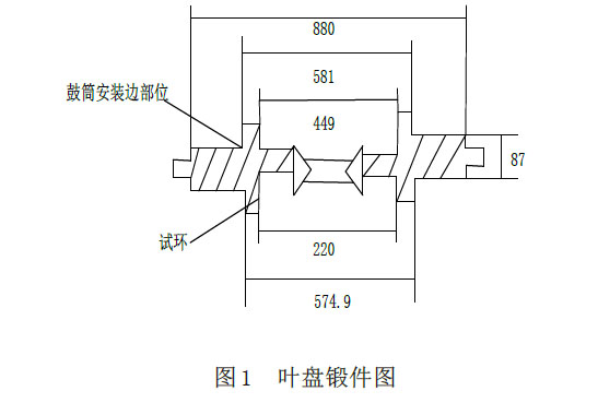 如圖1所示,整個葉盤鍛件由試環(huán)和鼓筒安裝邊部位組成。