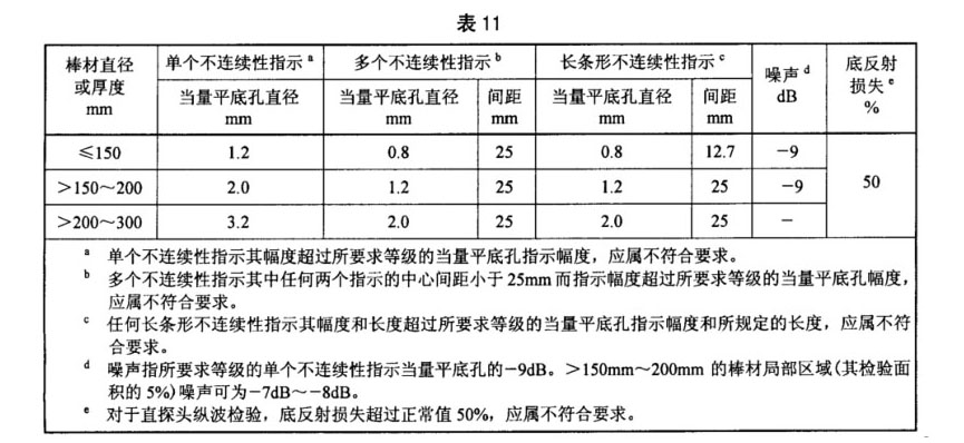 3.6.1 除B類用途的TA15鈦合金棒材外,棒材或鍛坯應按GB/T 5193的規定進行超聲波檢驗,其驗收級別應符表10的規定。
