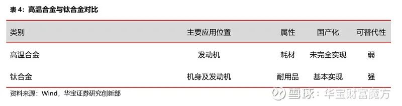 4、可被替代的難易程度不同:從材料性質看,高溫合金強度、韌性、耐高溫性和加工等綜合性能優于鈦合金,可替代性弱。而近年碳纖維等復合材料快速崛起,或可部分替代鈦合金。應用戰略地位的高度有所差異,高溫合金長期應用的戰略地位相對鞏固。