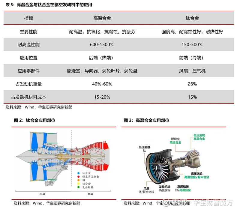 1、應用位置不同:鈦合金需求在機身結構件和發動機都有應用,包括機身關鍵結構件、,發動機結構件和轉動件等,另外先進發動機鈦合金葉片風扇和壓氣機占比達到40%;高溫合金則側重于發動機發動機結構設計和制造,工藝極其復雜,,導致其需求周期往往略偏滯后,同時發動機維修價值較高,且壽命短于機身,維修和更換的需求疊加會放大高溫合金需求景氣的持續性;